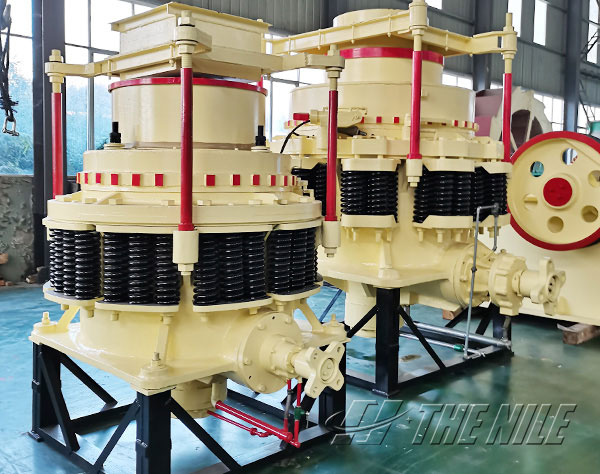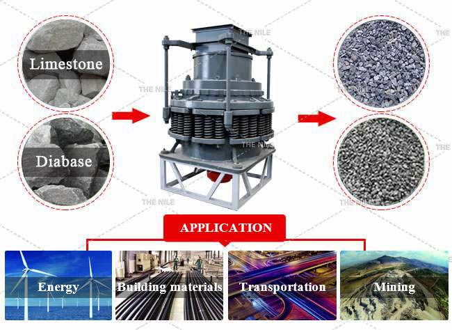 In the working process of the cone crusher, the motor drives the eccentric sleeve to rotate through the transmission device, and the moving cone rotates under the force of the eccentric shaft sleeve, and the section near the static cone becomes a broken cavity. The material is crushed by the extrusion and impact of the moving cone and the static cone. When the moving cone leaves the section, the material of the required particle size falls under the action of its own gravity and is discharged from the bottom of the cone.