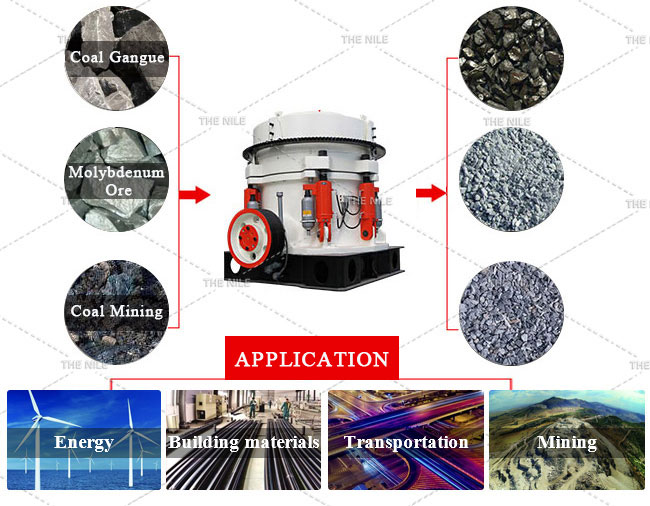 Applicable materials: various coarse, medium and fine materials with compressive strength not exceeding 350MPa, such as: river pebble, granite, basalt, iron ore, shale, limestone, coal gangue, quartz stone, diabase, marble, copper Ore, pebbles, etc.