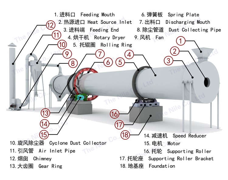The Nile CO., LTD could provide you professional installation guidance and after-sale service about single cylinder double cylinder and three cylinder rotary dryer, look forward to long term cooperation.