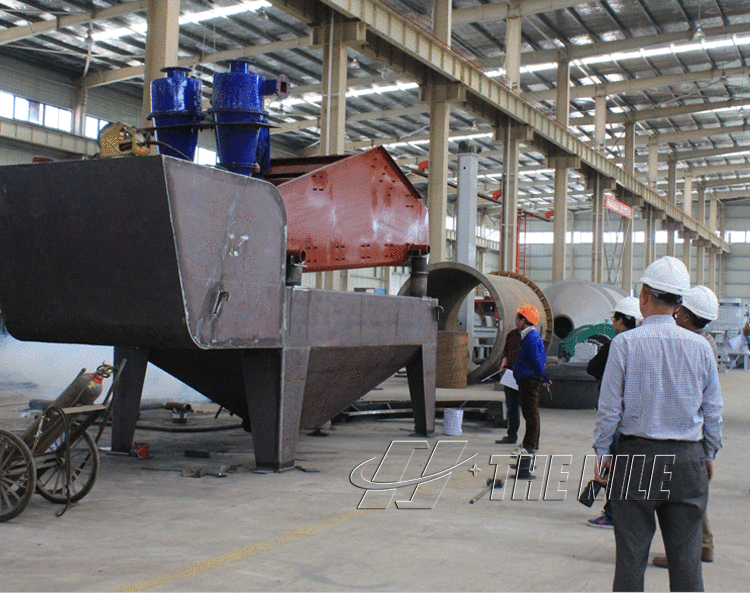 Working process: The pump sends the sand and water mixture to cyclone, the fine sand with eccentricity is sent to vibrating screen. The fine sand and water are effectively separated after dehydration, and little fine sand and mud go back to washing trough.