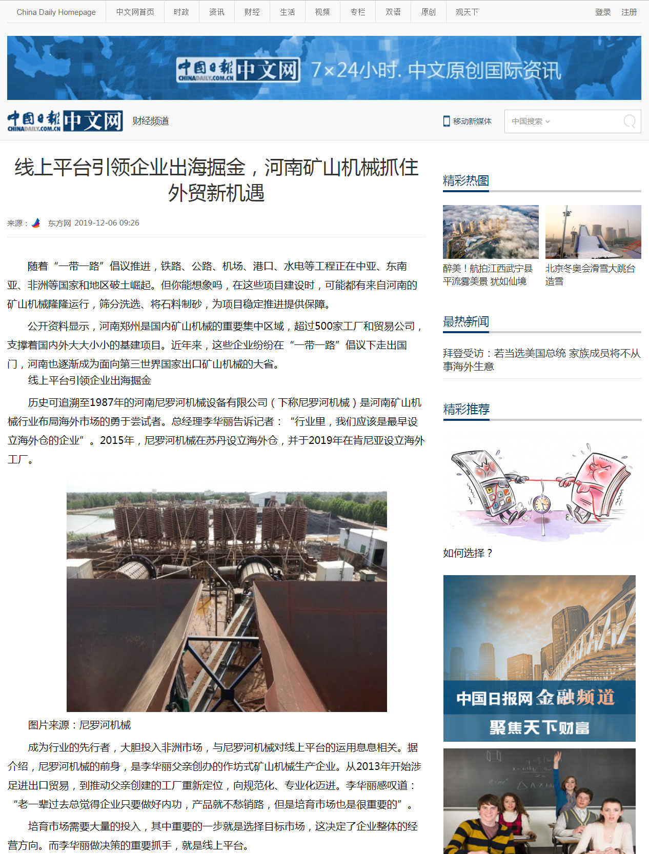 - The Nile Machinery won the Zhengzhou E-commerce Innovative Person Award